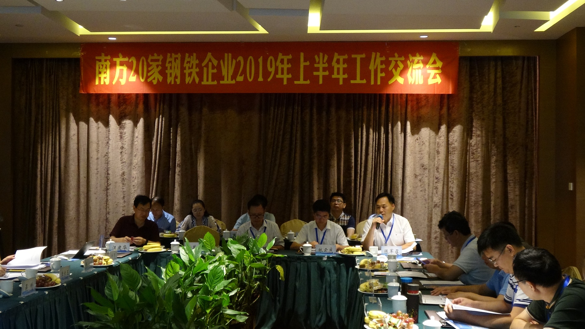 【概要描述】7月25日—27日,南方20家鋼鐵企業(yè)2019年上半年工作交流會隆重召開,本次會議由湖北金盛蘭冶金科技有限公司承辦,南方20家鋼企理事會駐杭州聯(lián)絡(luò)處協(xié)辦。南方20家鋼企理事會、柳州鋼鐵、昌興國際供應(yīng)鏈、廣州鋼鐵、上海鋼聯(lián)、鄂城鋼鐵、漣源鋼鐵、杭州鋼鐵、成渝釩鈦、濟(jì)源鋼鐵、南京鋼鐵、新余鋼鐵、中天鋼鐵、漢陽鋼廠、江西萍鋼、福建三鋼、衢州元立、金盛蘭冶金、中冶南方、安陽鋼鐵等20家成員單位相關(guān)負(fù)責(zé)人參